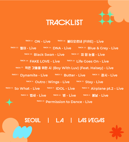 이는 방탄소년단이 처음으로 선보이는 라이브 앨범이다. 이번 앨범은 지난 2021년 서울, 로스앤젤레스, 라스베이거스 총 3개 도시에서 온·오프라인 12회로 펼친 동명의 투어 실황을 담았다. 팀의 메가 히트곡인 ‘Dynamite’, ‘Butter’, ‘Permission to Dance’를 비롯해 ‘DNA’, ‘피 땀 눈물’, ‘작은 것들을 위한 시 (Boy With Luv) (Feat. Halsey)’ 등 22곡이 수록됐다. ‘PERMISSION TO DANCE ON STAGE - LIVE’는 방탄소년단의 목소리와 공연장을 뜨겁게 달군 관객들의 함성, 응원이 녹아 당시의 감동을 다시금 소환한다. 이를 통해 멤버들과 아미(ARMY.팬덤명)가 함께 만든 찬란한 순간을 되새기게 한다.